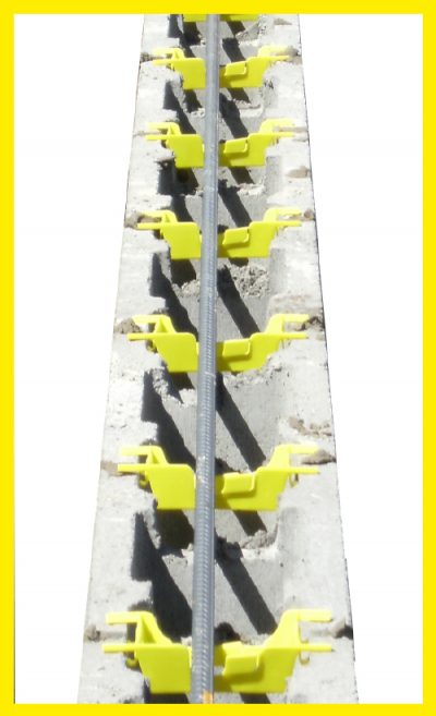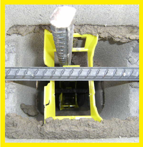 For use with 290mm blocks (Jumbo Blocks) to locate the horizontal reinforcement in the correct lateral position during construction and provides for the vertical reinforcement to be inserted from the top to the bottom of the wall to ensure the structural integrity of the wall is achieved.