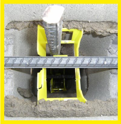 Locates the horizontal reinforcing steel in the correct lateral position during construction and provides for the vertical reinforcement to be inserted through the BLOCKAID in the centre of the core to ensure the structural integrity of the wall is achieved.